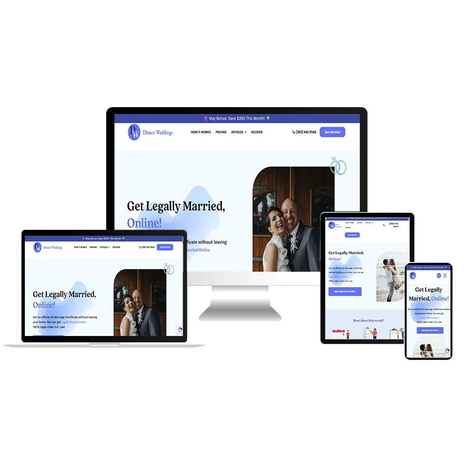 منصة عبر الإنترنت تمكن الأزواج من جميع أنحاء العالم من الزواج قانونياً من خلال مراسم افتراضية، وتوفر شهادات زواج رسمية من الولايات المتحدة معترف بها في جميع الولايات الخمسين